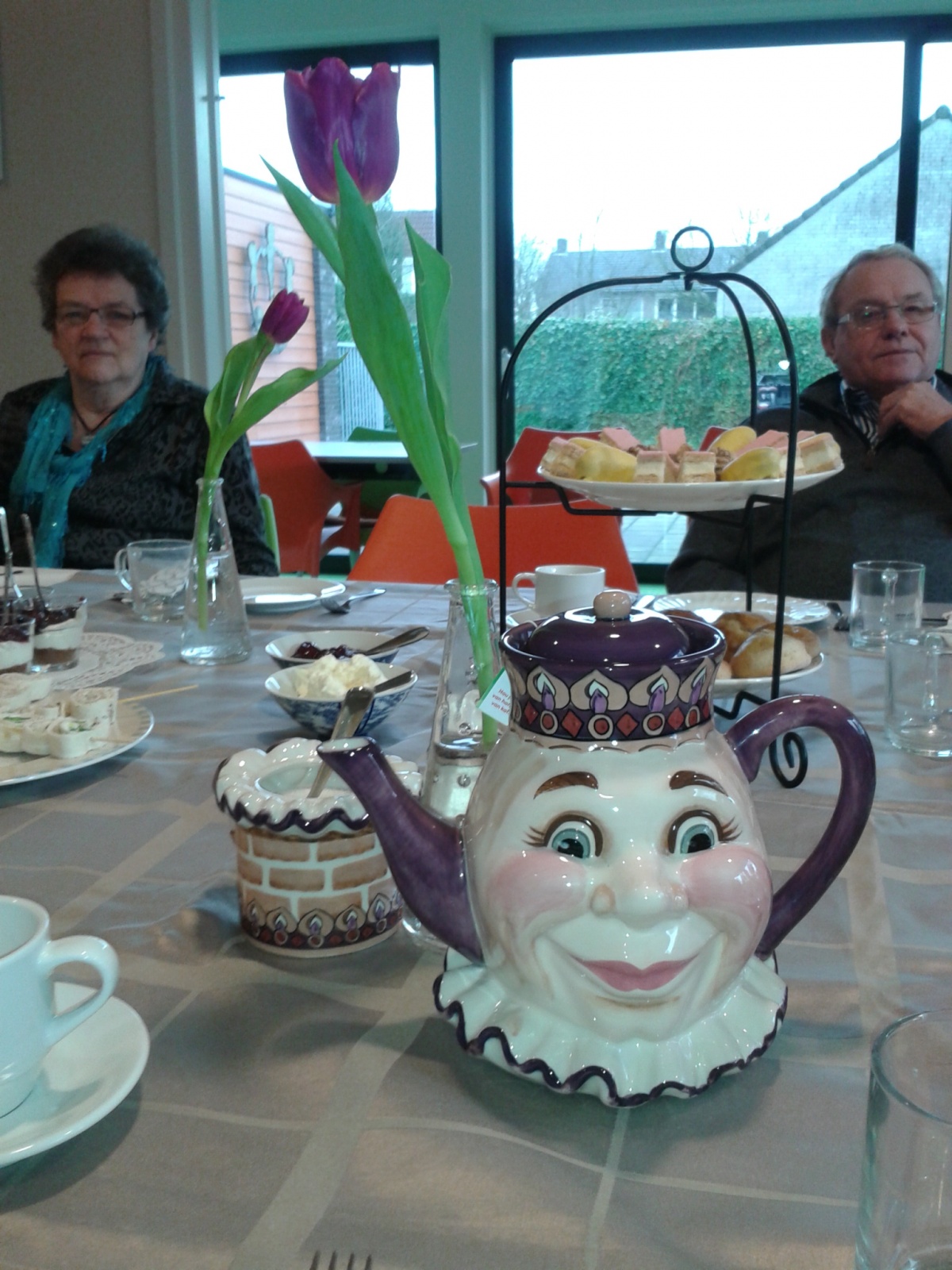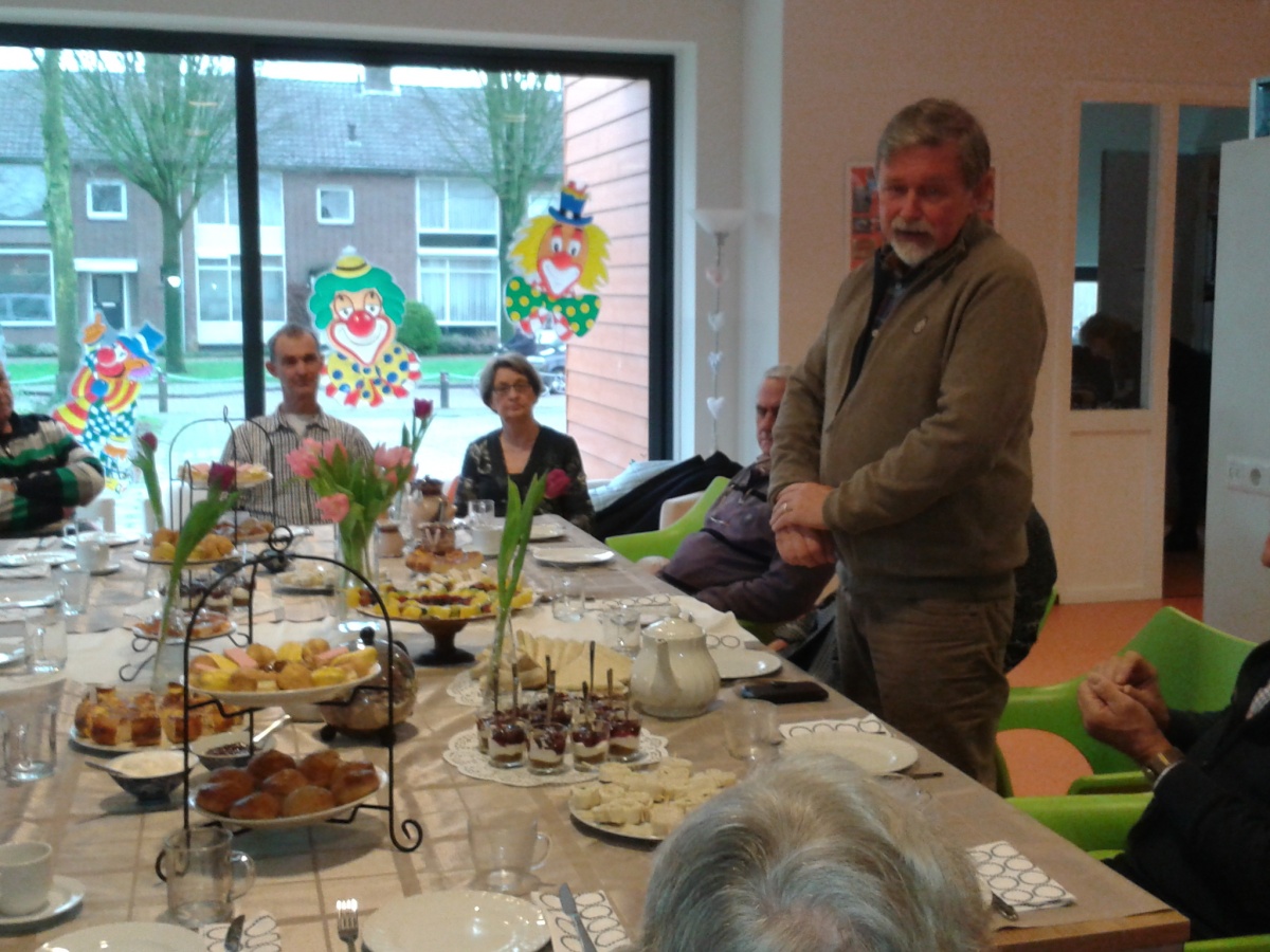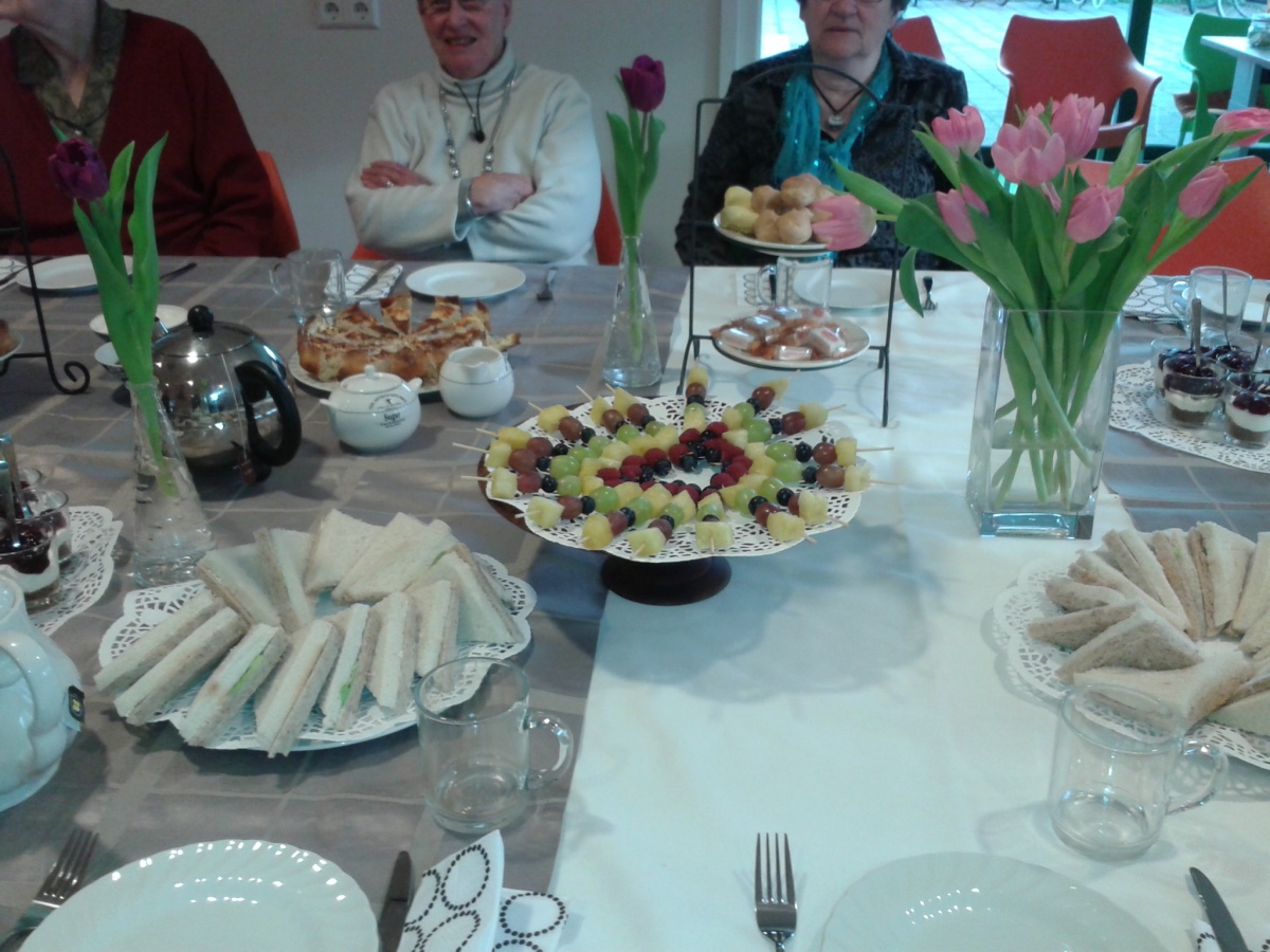 Op 15 januari 2016 kwamen alle vrijwilligers van het Bewonersoverleg bij elkaar. De vrijwilligers zijn de gastvrouwen die bij toerbeurt de koffie en thee verzorgen en de spelletjes meespelen tijdens de ontmoetingsochtenden in de Brede School, de tuinlieden die samen met Trudy de moestuin verzorgen, de creatieve docente en de bestuursleden. Zij genoten van een heerlijke High Tea die door Trudy aan den Toorn en Petra Sytsma was verzorgd. Hieronder enkele foto's van deze bijenkomst.